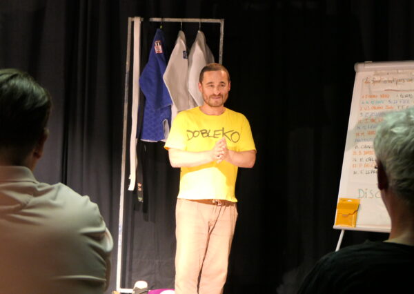 Le conférencier fait le choix de s’écarter de la critique acide du système pour « quelque chose de plus pédagogique. L’avantage des conférences gesticulées, c’est qu’on peut soutenir avec des exemples, vulgariser, donner des définitions et lutter contre les amalgames. »